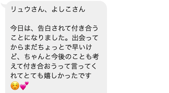 恋愛に困っている人みんなに受けてもらいたいなと思います!